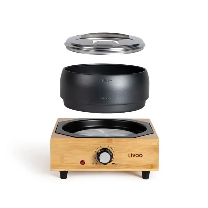 La capacité de 2 litres permet de servir jusqu'à 8 personnes sans remplissages fréquents, pratique pour des tablées familiales ou amicales. La puissance de 1500 W soutient une chauffe stable, ce qui aide à obtenir une texture homogène, qu'il s'agisse d'une recette au chocolat ou d'autres préparations adaptées. Grâce au thermostat réglable pour une cuisson maîtrisée, il est possible d'ajuster précisément la chaleur pour éviter les débordements et limiter les risques d'adhérence. Le caquelon doté d'un revêtement antiadhésif en acier facilite le service et le nettoyage après utilisation.