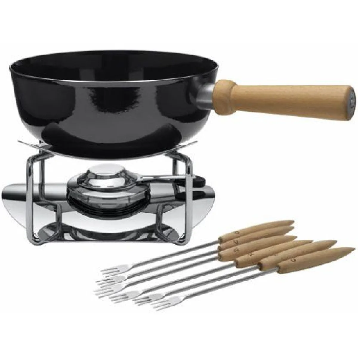 Appareil à fondue bourguignonne - Caquelon Silargan anti-rayures - Tous feux dont induction - Brûleur inox 18/10 - 6 fourchettes numérotées - Température réglable