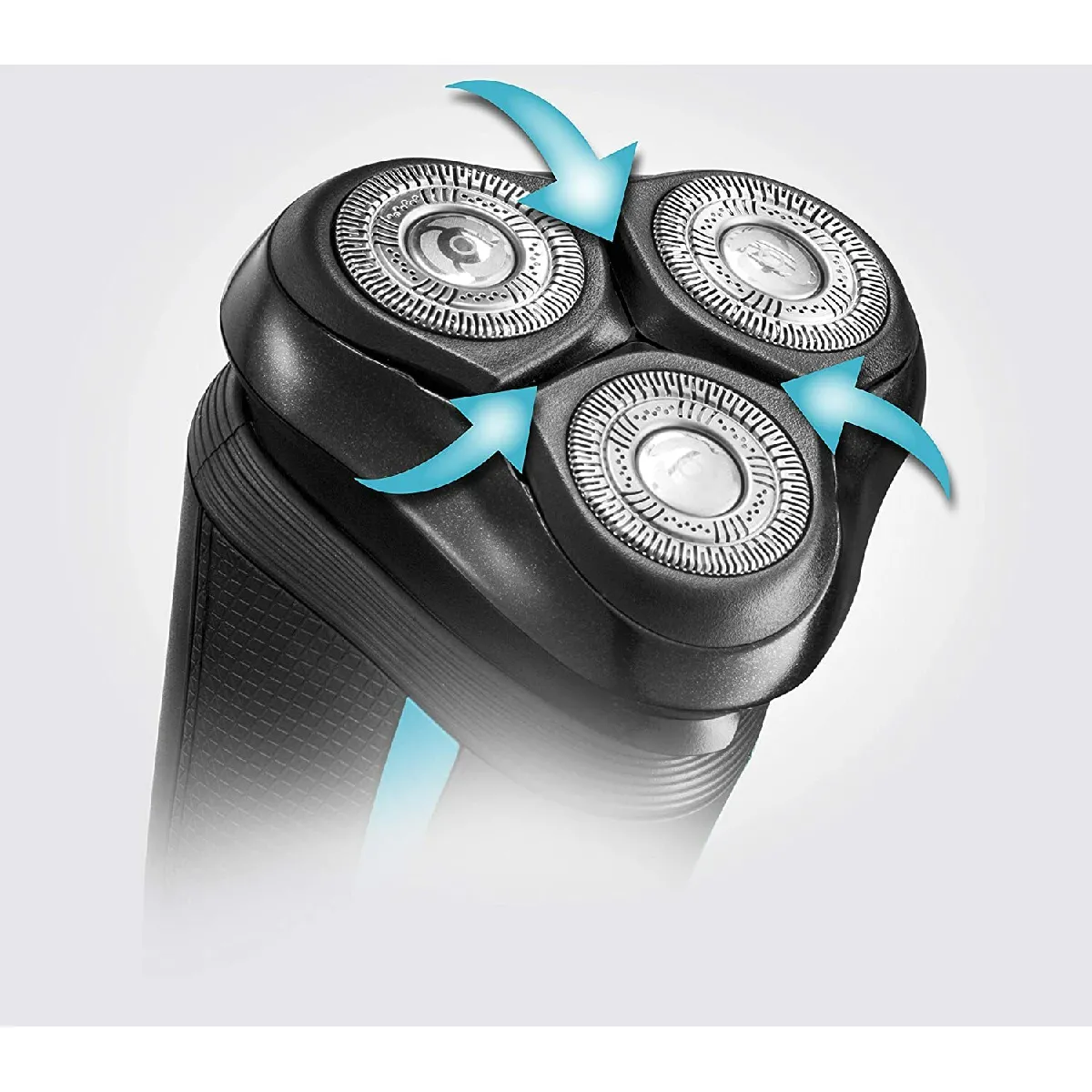 Le rasoir est doté de 3 têtes rotatives pour suivre les contours du visage.