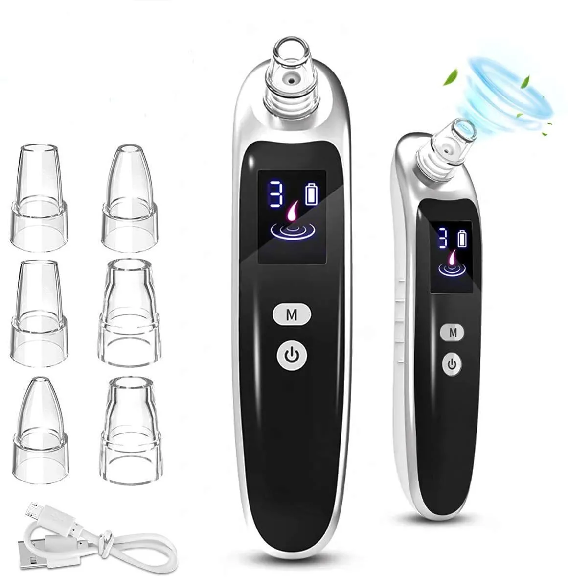 Aspirateur de points noirs pour le visage - 6 embouts - Affichage LED - Rechargeable - Niveaux d’aspiration réglables - Corps ergonomique - Matériau ABS