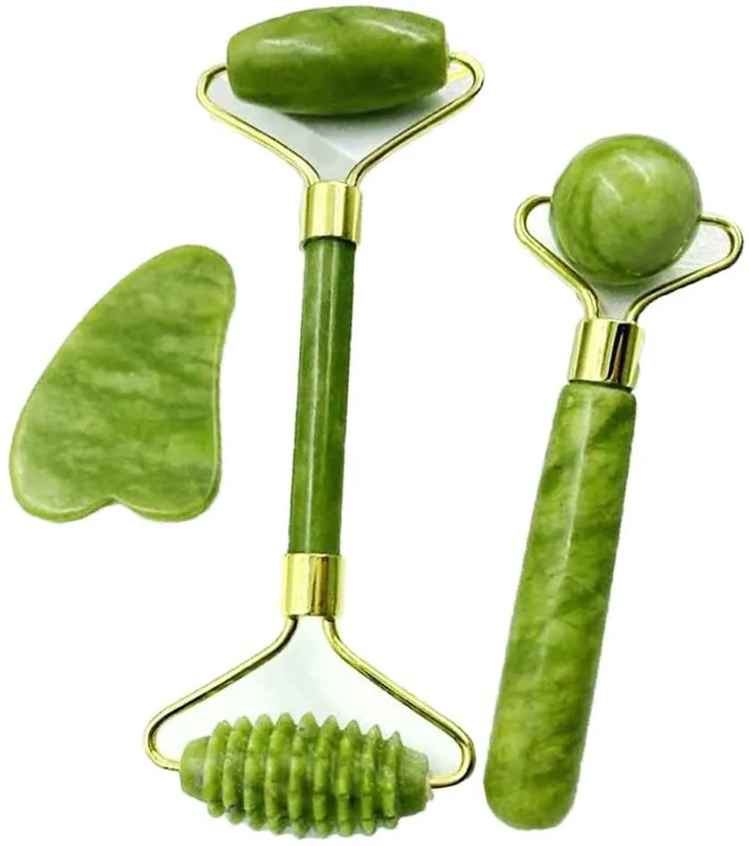 - Coffret : 2 rouleaux de jade pour le visage + 1 Gua Sha pour visage, cou et épaules