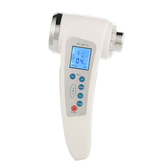 Appareil soin du visage à ultrasons - RF vibration - Ions ± - Lumière LED rouge/verte/bleue - Batterie 60 min