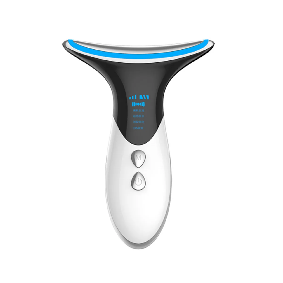 Appareil beauté cou/visage - Lumière LED - Chauffage doux - Massage vibrant - ABS+PC - Batterie rechargeable 5V