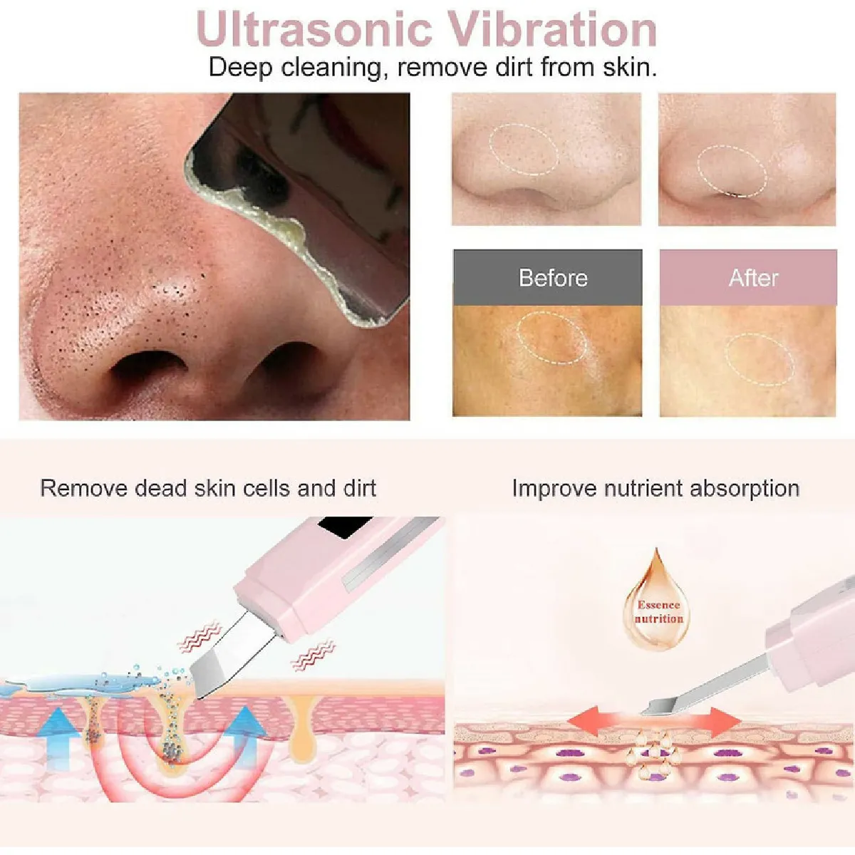 Épurateur de peau pour le visage - Ultrasons 24 kHz - Lame inox - Mode EMS - USB rechargeable - Nettoyage profond des pores - Pour tous types de peau
