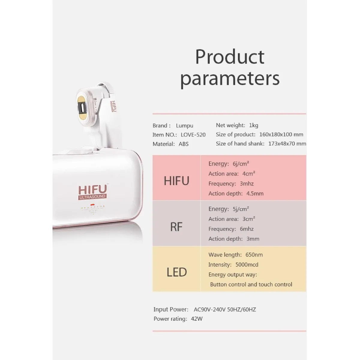 - Puissance de 42 W et zones d'application centrées sur le visage et le cou