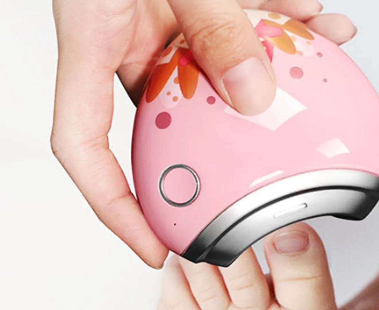 Le moteur silencieux (petit < 50 dB) soutient une utilisation plus discrète. L'interface à un clic simplifie l'allumage et l'arrêt, pratique lors des soins. Le boîtier en ABS avec placage métal offre une prise en main légère. L'appareil propose une alimentation 5 V avec puissance de 2,5 W et une batterie lithium polymère 3,7 V 500 mAh pour la recharge. Le format compact 78 x 80 x 33 mm et le poids net de 35 g facilitent le rangement et le transport pour des retouches rapides en manucure et pédicure.