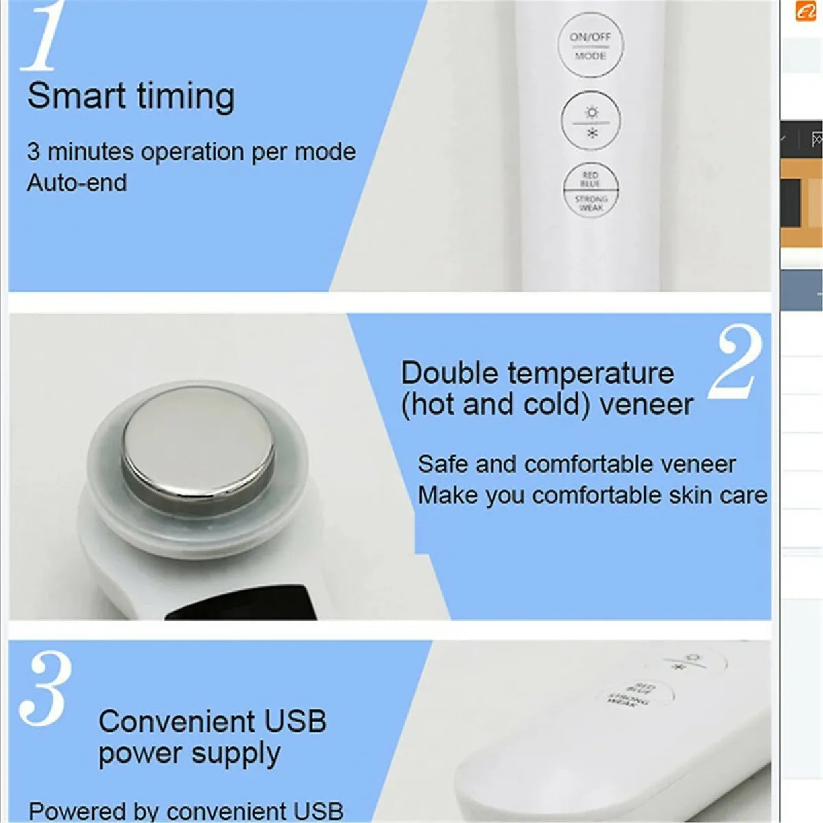 Appareil de soin du visage - Lumière rouge et bleue - Iontophorèse - Chaud et froid - USB rechargeable - Arrêt auto 3 min - 60 min d’autonomie
