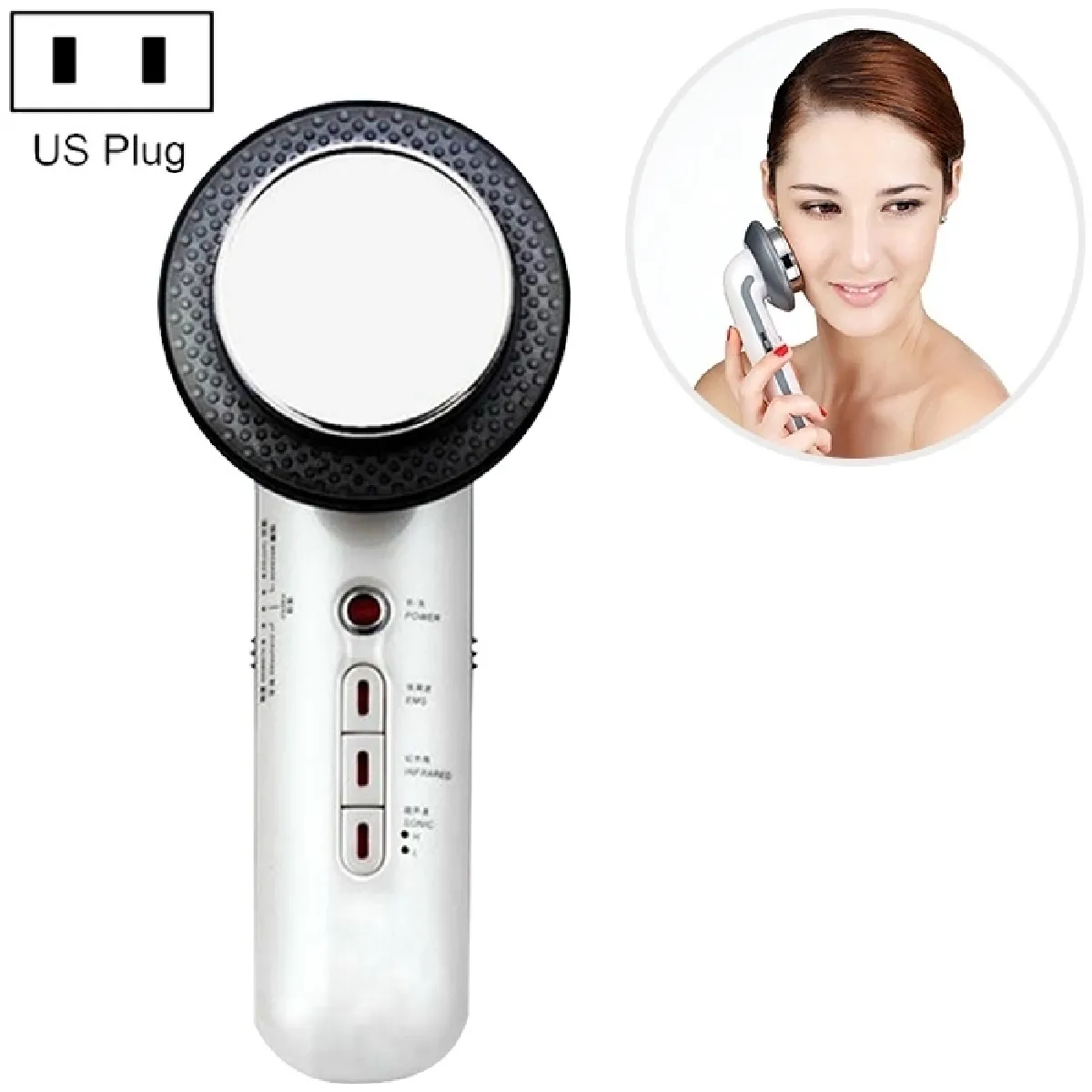 Appareil de massage beauté visage/corps - Ultrason - Infrarouge - EMS basse fréquence - 12 W - Alim. AC 100-240 V - Portable