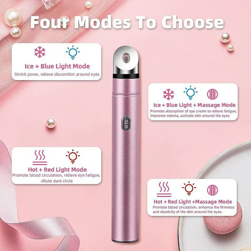Appareil de massage pour contour des yeux - LED rouge/bleu - chaud/froid - micro-courant - vibrations hautes fréquences - rechargeable USB