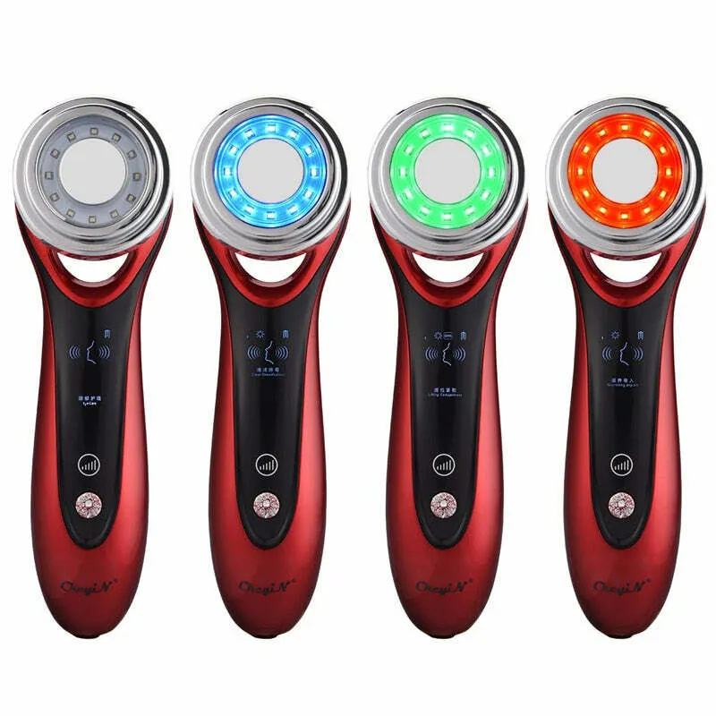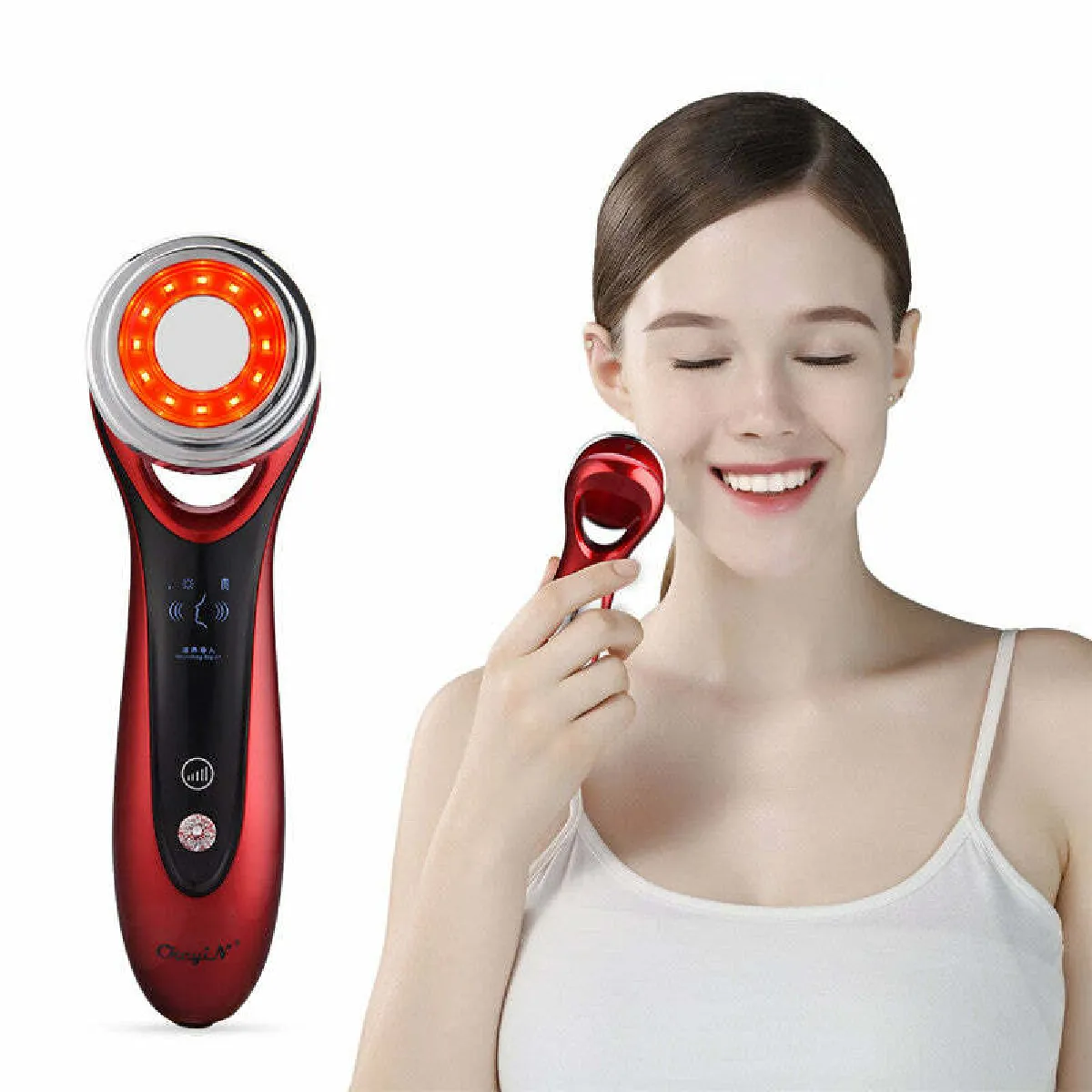 Appareil de soin du visage - Nettoyage en profondeur - EMS raffermissant - Lumière rouge/bleue LED - Vibration haute fréquence - 5 intensités - Batterie rechargeable