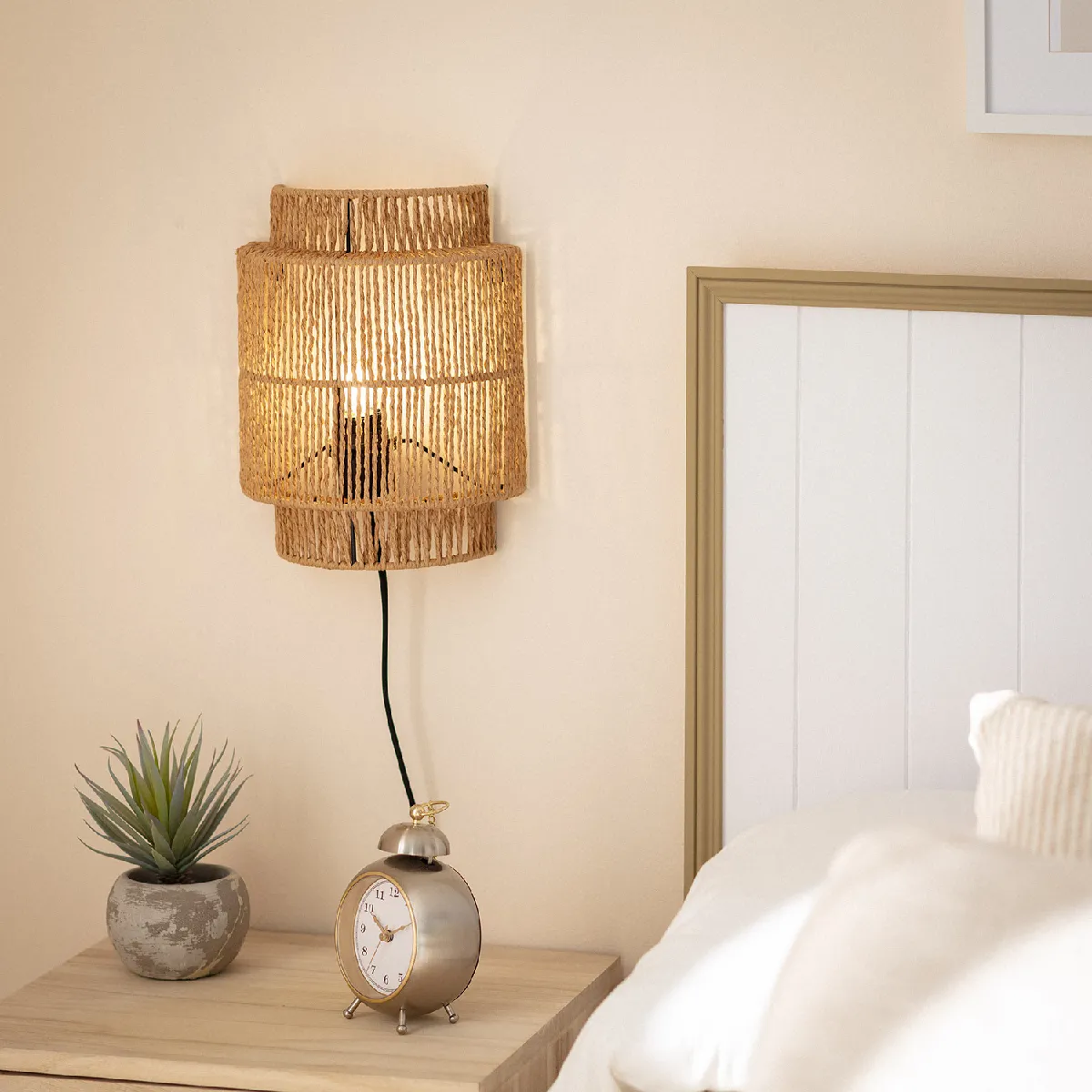 Applique murale rotin - Style méditerranéen - Compatible E27 - Ampoule non incluse