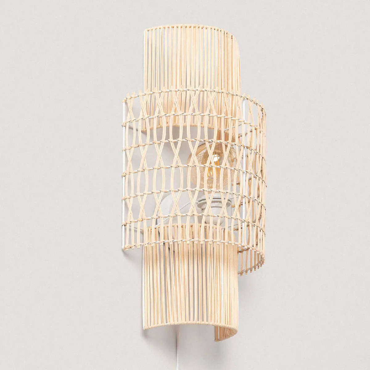 L'Applique Murale Papier Tressé Masego L ILUZZIA est réalisée avec du papier tressé noué le long de la structure pour donner son design final. Cette applique murale se connecte à la prise à l'aide d'une fiche et s'allume ou s'éteint à l'aide de son interrupteur. Les deux sont inclus dans le produit.