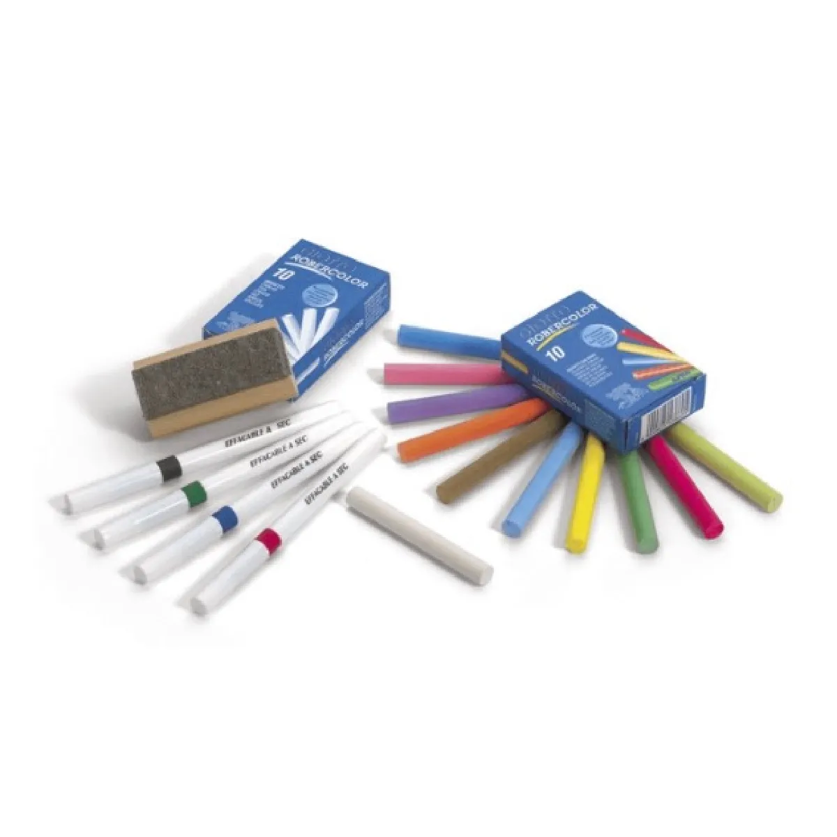 Kit d'accessoires - Craies, feutres, brosse - Pour tableaux noirs et blancs