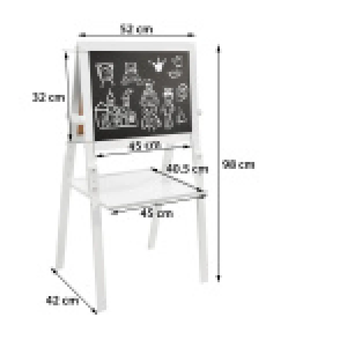 Dimensions: Hauteur: 98cm, Largeur: 52 cm, Zone de dessin: 35 cm x 45 cm, Étagère: 40,5 x 45 cm