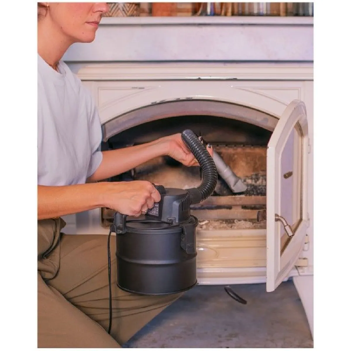 Aspirateur à cendres et poussières LIVOO de 600W avec cuve en métal de 4L. Il comprend un suceur plat en métal et un flexible d’aspiration de 40 cm. Avec un niveau sonore de 84 dB et un filtre HEPA, il assure un nettoyage efficace et sans sac..