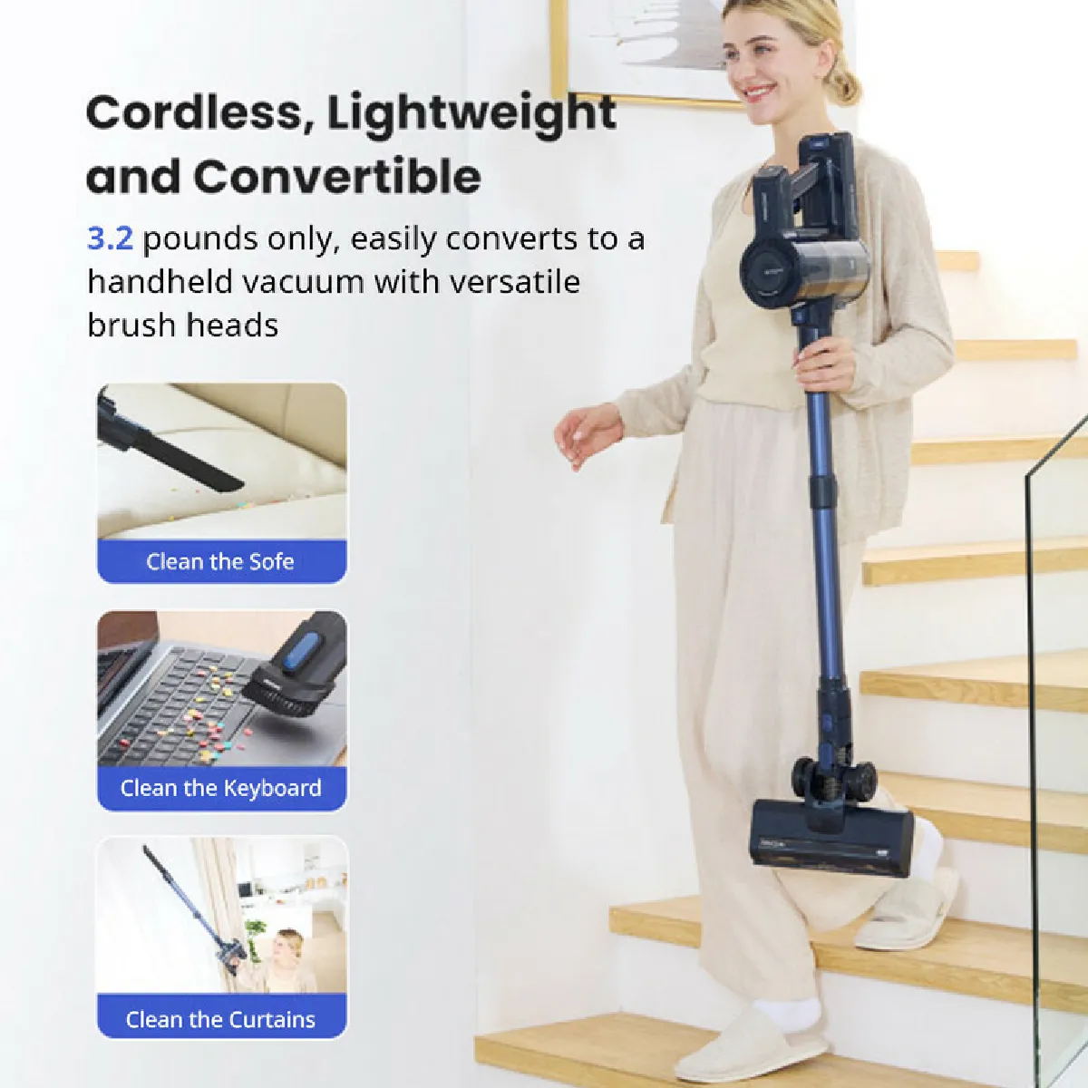 Le corps du moteur ne pèse que 3,2 lb, idéal pour nettoyer d'une seule main au-dessus des sols ou pour monter et descendre les escaliers. Se transforme facilement en aspirateur à main doté de têtes de brosse polyvalentes pour nettoyer les escaliers, les voitures, les meubles et bien plus encore.