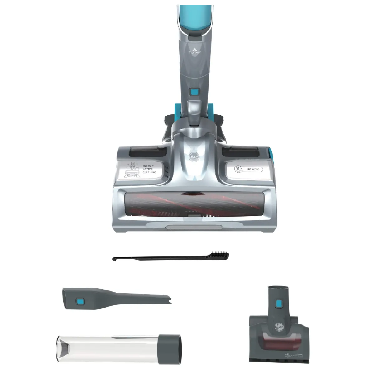 Livré avec une mini turbobrosse Flex & Deep, il déloge efficacement les particules sur textiles et zones difficiles d'accès. La tête principale Hybrid Care intègre des picots pour les tapis et une zone soft pour les surfaces délicates, tandis que l'électrobrosse Flat&Drive facilite la maniabilité sous les meubles et le long des plinthes. L'autonomie atteint 45 min, avec 35 min en Silence et 8 min en Turbo. Le poids total est de 2,6 kg et l'appareil propose une prise en main simple en mode balai ou à main.