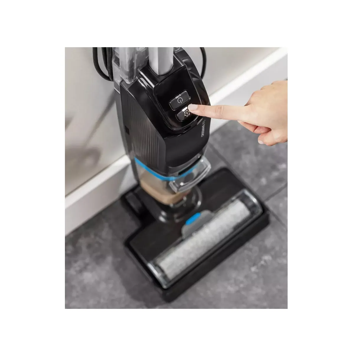 Pensé pour les sols durs, carrelages et planchers en bois, ce modèle combine aspiration et lavage pour retirer saletés sèches et humides en une seule opération. La puissance de 340 W couplée à l'alimentation secteur offre un fonctionnement stable sans perte d'efficacité. Grâce à son réservoir d'eau propre de 0,75 l et réservoir d'eau sale de 0,58 l, l'appareil maintient les flux séparés pour préserver la qualité du nettoyage. La vitesse unique simplifie les réglages : il suffit d'actionner l'appareil et de parcourir les surfaces en aller-retour pour entretenir efficacement le sol.