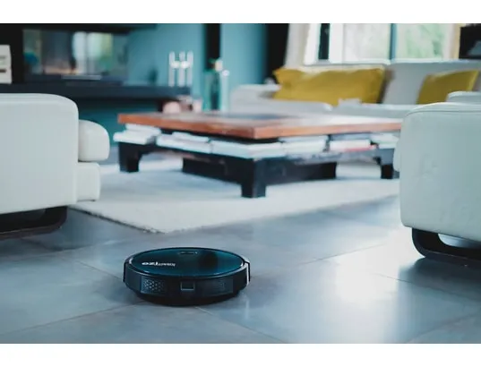 La faible hauteur de 7,6 cm permet au robot de passer sous de nombreux meubles tout en couvrant efficacement tous types de sols : parquet, carrelage, moquette et tapis. Sa navigation gyroscopique Navig+ optimise les trajectoires pour limiter les passages inutiles et améliorer la couverture des pièces. Avec un niveau sonore de 55 dB, il travaille de manière discrète, adapté aux espaces de vie partagés. Le collecteur de 0,6 l offre une capacité correcte pour des cycles complets dans des surfaces jusqu'à 120 m² préconisés. Compatible Google Home et Alexa, il s'intègre dans une utilisation quotidienne connectée avec des commandes simples et un contrôle à distance.