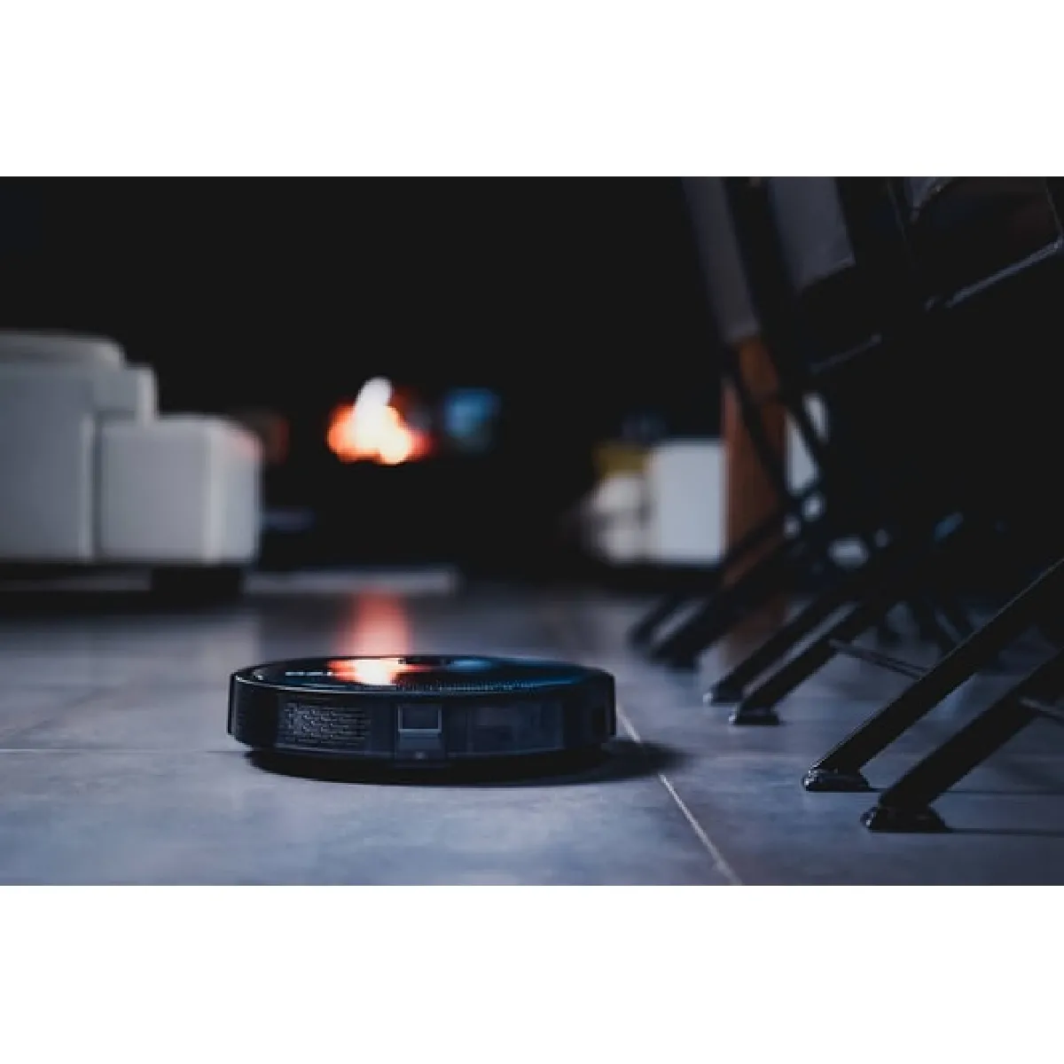Le niveau sonore annoncé de 55 dB permet un fonctionnement discret, adapté à un entretien régulier sans perturber les activités. Le collecteur de 0,6 l prolonge les sessions avant vidage, utile sur les grandes surfaces jusqu'à 120 m². La station de charge au sol simplifie l'ancrage après chaque cycle et facilite le rangement. L'absence de télécommande est compensée par le pilotage connecté, pratique pour lancer un cycle, mettre en pause ou programmer des passages ciblés selon la configuration des pièces.