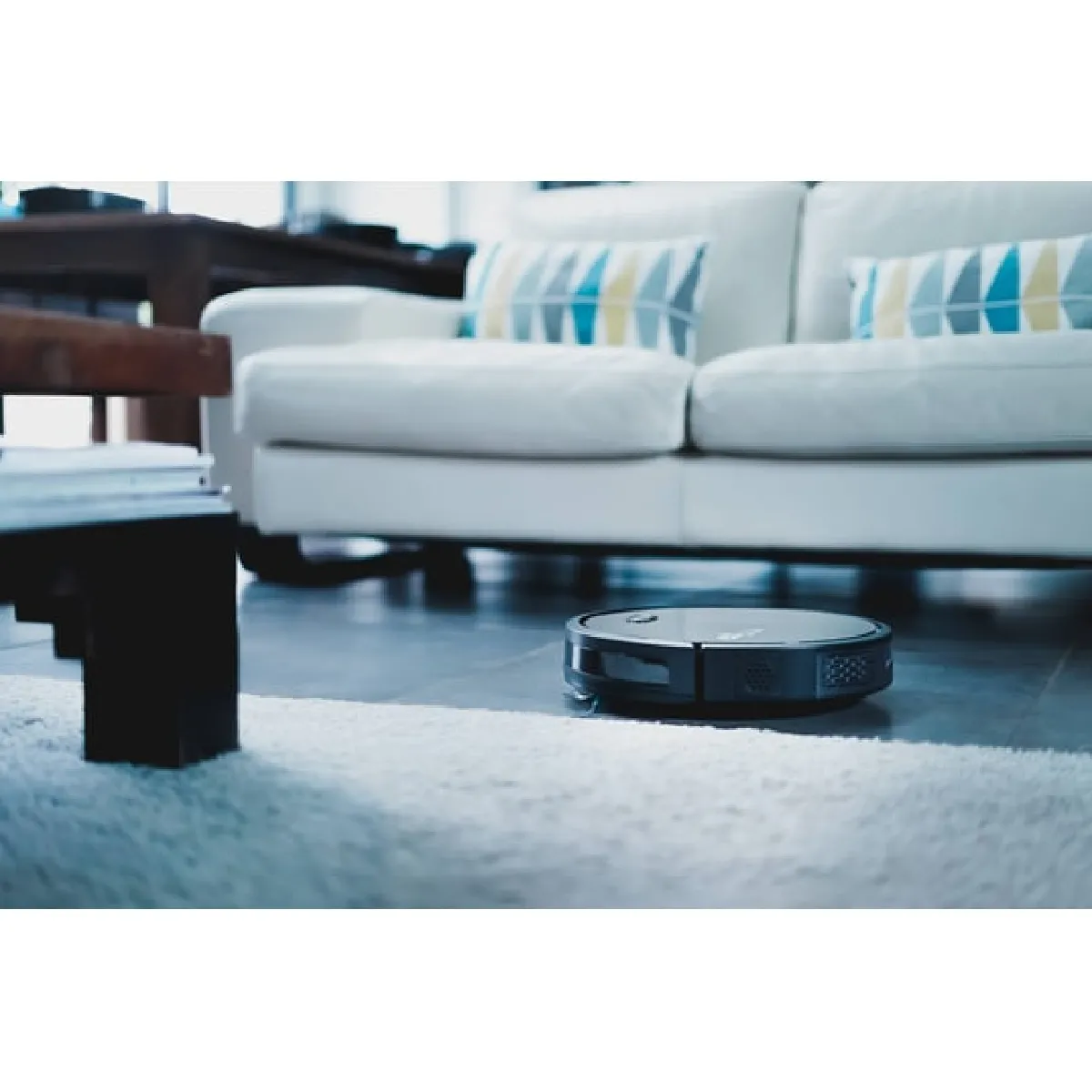 La hauteur du robot est de 7,6 cm ; il peut passer sous les meubles offrant un dégagement supérieur à cette valeur.