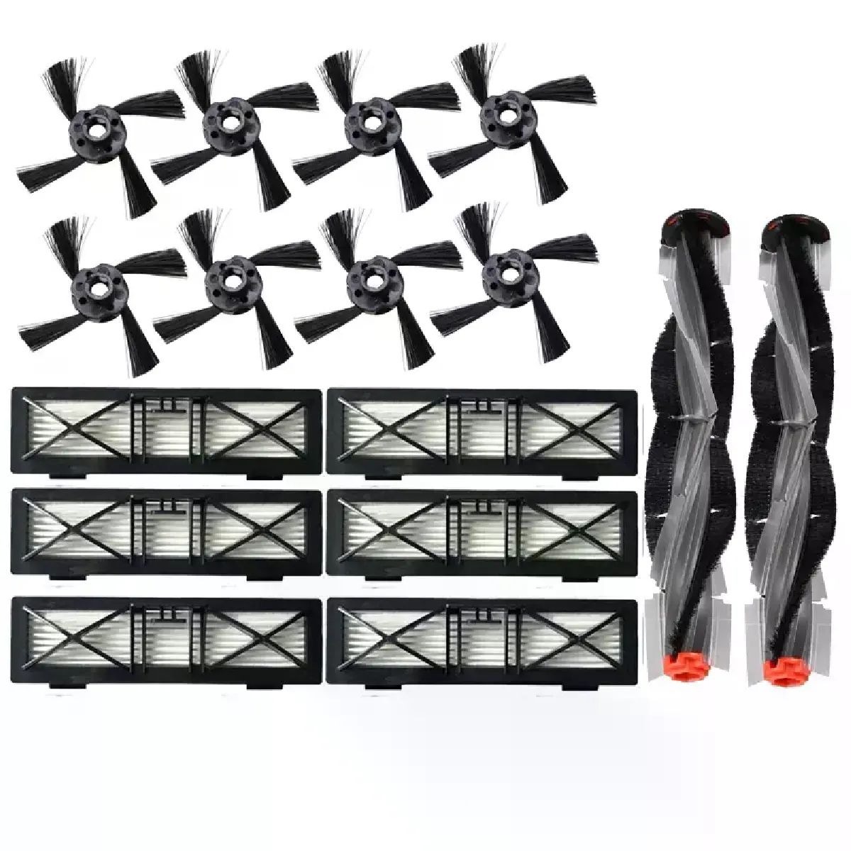 - Contenu : 2 brosses principales, 6 filtres HEPA, 8 brosses latérales