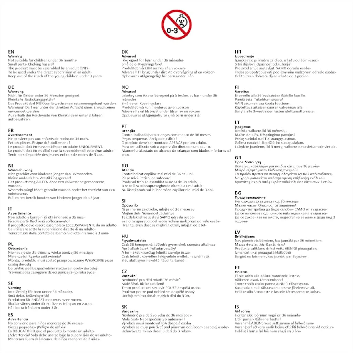 Avertissement. Ne convient pas aux enfants de moins de 3 ans. Petits éléments présents. Risque d'étouffement.