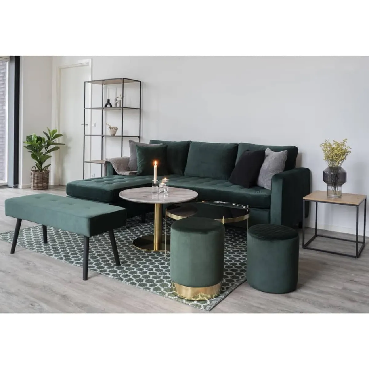 Ce joli banc en velours vert de la gamme LEEDY résulte d'un mélange de style vintage et industriel. Avec ses pieds en acier très robustes, cet article est d'une grande utilité dans le dressing. En faisant preuve de créativité, vous pouvez aussi le placer comme siège dans votre salon, entourés d'accessoires les plus insolites. La couleur verte un peu foncée fera une décoration parfaite au milieu de meubles ou lampes à la finition cuivrée ou dorée. Pour décorer l'assise rectangulaire, des motifs capitonnées s'alignent en pointillés au centre. Cette partie principale du banc est recouverte avec un tissu polyester effet velours.