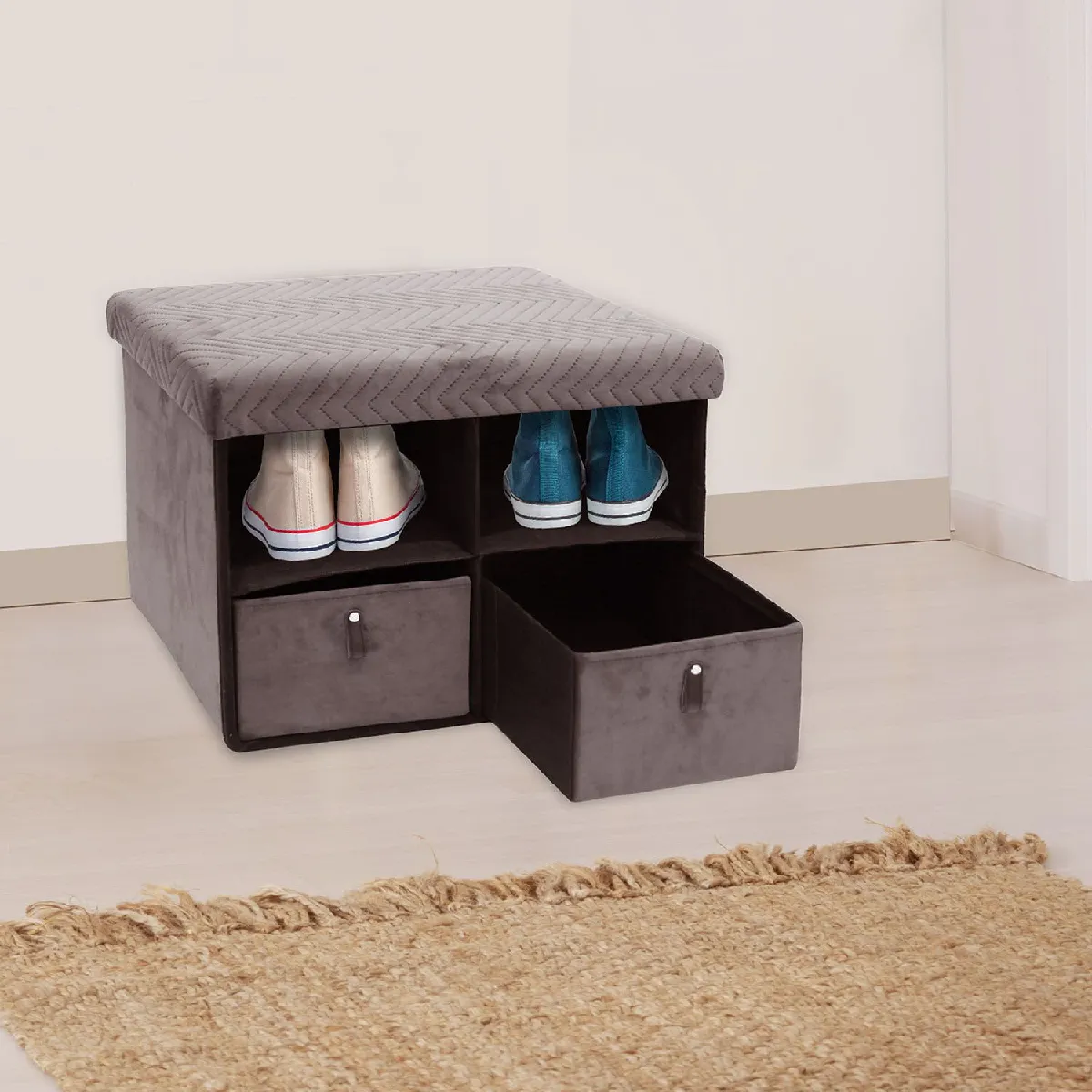 The Home Deco Factory - Banc de rangement pliable design velours Meli - L. 50 x H. 38 cm - Gris - Design