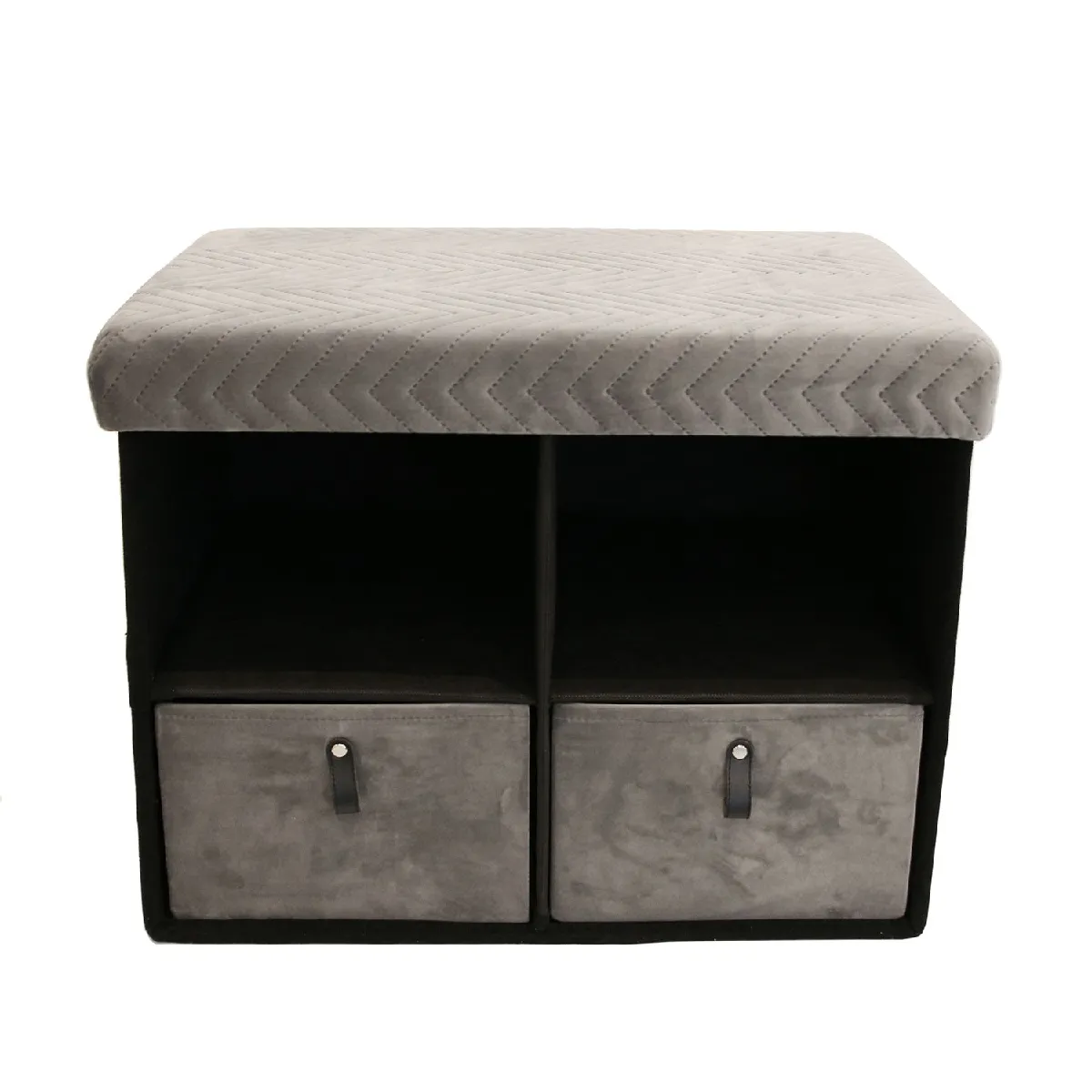 The Home Deco Factory Banc de rangement pliable design velours Meli - L. 50 x H. 38 cm - Gris