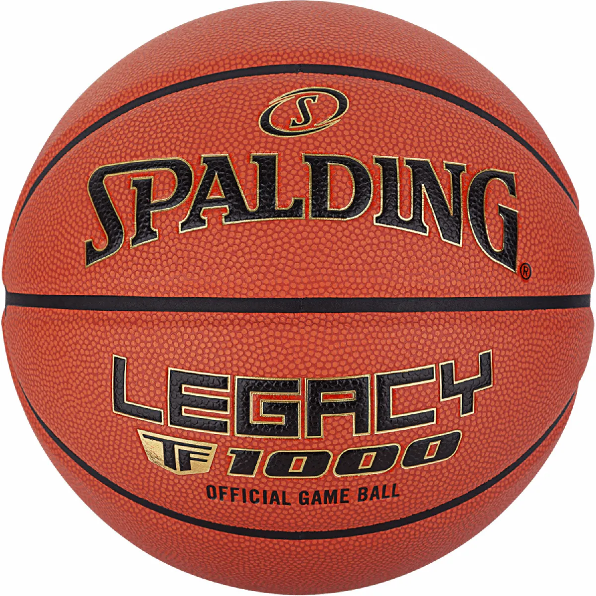 Le ballon de basket Spalding TF1000 Legacy FIBA est un ballon de match officiel. Le composite en microfibre permet d'eliminer la transpiration et offre ainsi une meilleure prise en main. Le ballon de basket Spalding TF1000 Legacy est fabrique et convient uniquement au basket-ball en salle. Évitez une valve cassee en ne gonflant les ballons de basket qu'avec des aiguilles de pompe en metal.