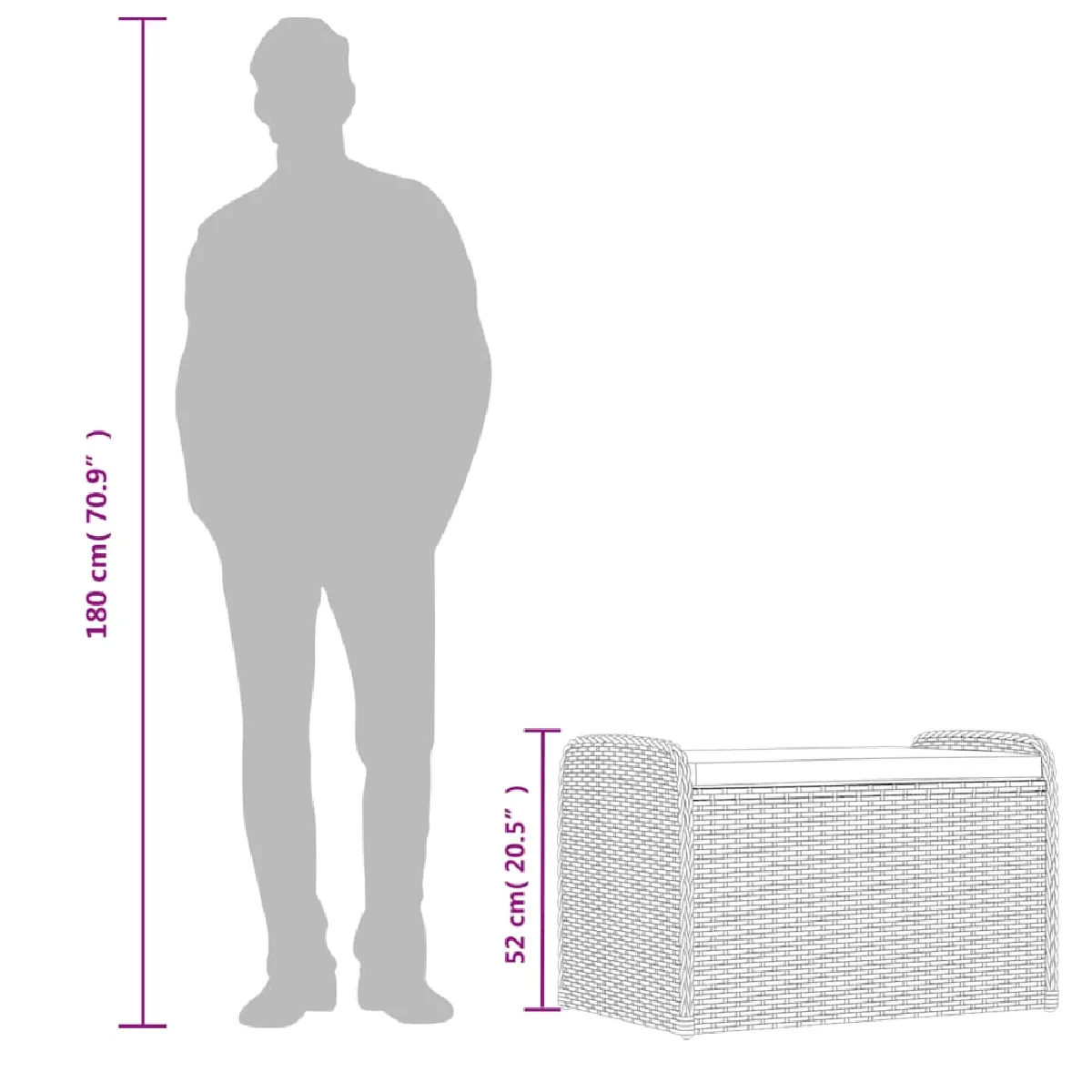 Commentaire vendeur : vidaXL Banc de rangement avec coussin gris 80x51x52 cm résine tressée