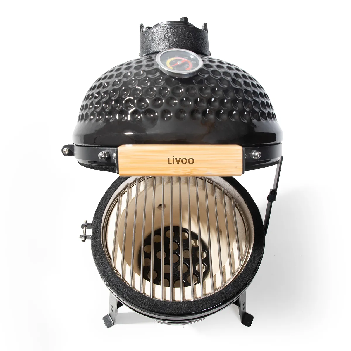 Barbecue à charbon - Corps en argile réfractaire - Thermomètre intégré - Noir