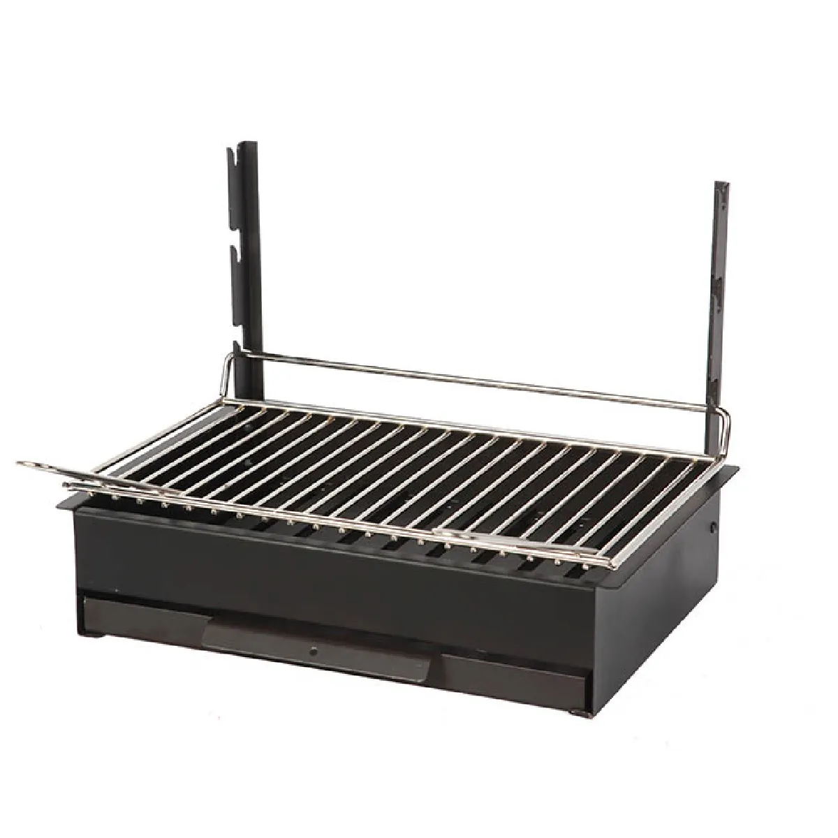Commentaire vendeur : Barbecue à charbon encastrable ou à poser Original Vulcan Le MarquierDes grillades au bon feu de bois avec le barbecue à charbon encastrable Le Marquier Original Vulcan en acier.Très pratique, ce barbecue à charbon peut être utilisé, posé ou encastré pour créer une cuisine extérieure.Doté de 3 niveaux, vous pouvez choisir la puissance de chauffe pour vos grillades.Caractéristiques :Pour 2 à 6 personnesFoyer horizontal avec une grille inox réglable sur 3 niveauxSurface de cuisson : 48 x 28 cmDimensions (L x l x H) : 50 x 50 x 36 cmTrou d'encastrement modèle : 47,8 x 33,4 cmCuve et tiroir à cendres en version acier peinture époxy coloris noirFonctionne au charbon de bois uniquementGarantie : 2 ans pour la cuve et la grilleNorme NFCaractéristiques techniquesCollection : Original VulcainCombustible : CharbonConvient pour : 4 à 6 personnesCouleur : NoirCouvercle : NonCrochet(s) porte-accessoires : NonCuve : AcierDimensions (L x l x H) : 50 x 50 x 36 cmDimensions colis (L x l x H) : NCFoyer vertical : NonGarantie : 2 ansGrille : Acier inoxydableGrille d'attente : NonHauteur : 36 cmMarque : LE MARQUIERMatière(s) : AcierNombre de couverts : 6Origine : Fabriqué en FrancePoids : 12 kgRécupérateur de cendres : OuiRéglage hauteur de grille : OuiRoulettes de déplacement : NonSurface de cuisson : 48 x 28 cmSystème d'allumage rapide : NonTablette(s) latérale(s) : NonType de barbecue à charbon : À poser / À encastrer