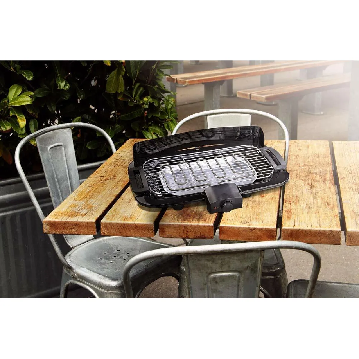 Barbecue Posable facile à utiliser tout au long de l'année, en intérieur ou extérieur, avec une puissance de 2000 W pour des grillades parfaitement saisies.