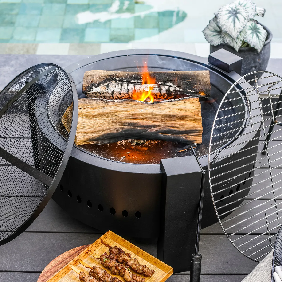 Brasero au bois ou charbon - Utilisation avec grille et capot anti-étincelles - Noir