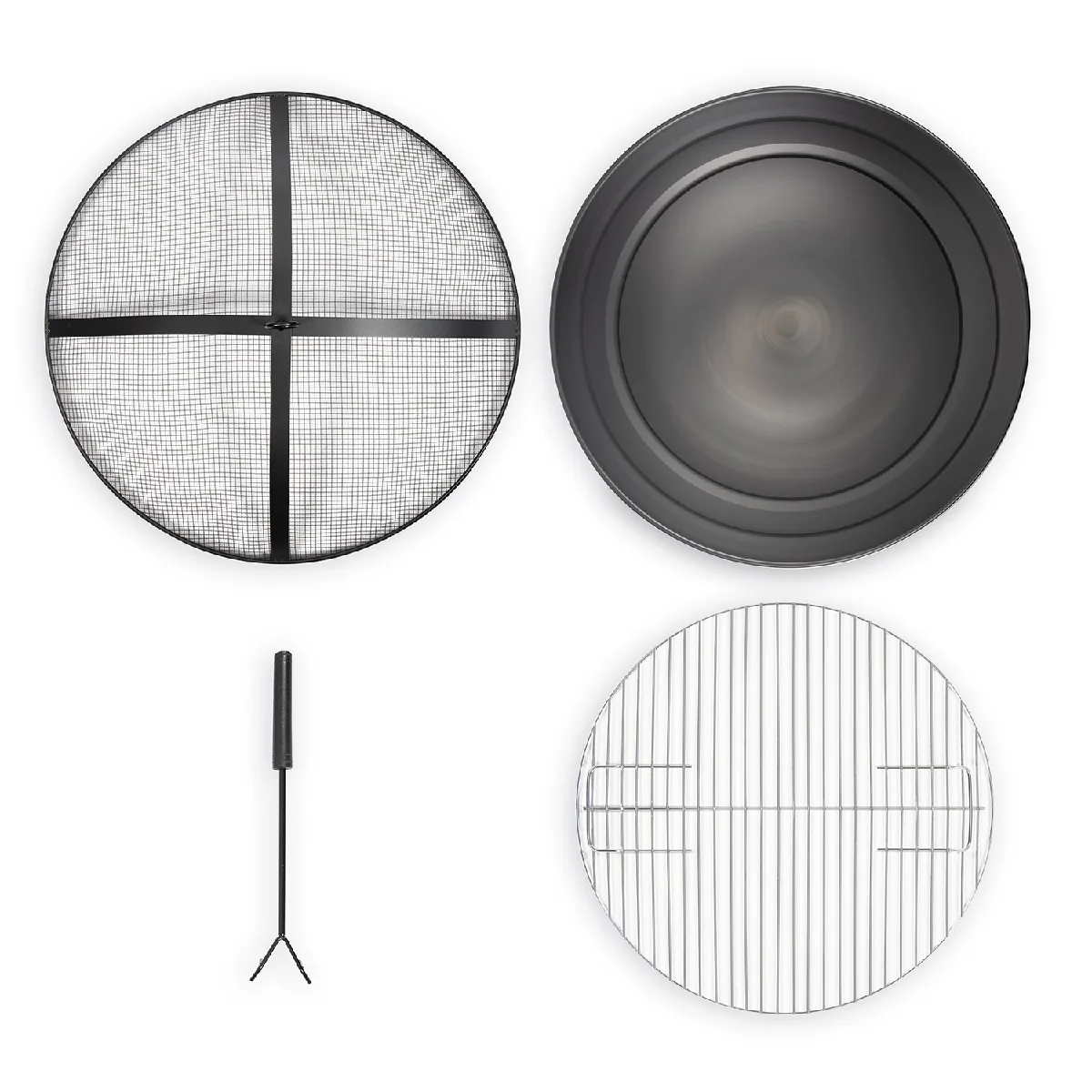 Commentaire vendeur : PING vous propose le must des brasero à prix mini ! Accompagné de divers accessoires, ce magnifique brasero en métal noir sera au centre de vos soirées conviviales en y apportant chaleur et lumière agréable et naturelle, avec du bois et/ou du charbon de bois crépitant ! D'un grand diamètre (env. 60 cm) et équipé d'une grille pour faire griller aussi des aliments, il est aussi apte à être utiliser comme barbecue d'appoint ! Pas de stress ! Ce brasero intègre 3 pieds de maintien pour une excellente stabilité et un capot anti-étincelles pour plus de sécurité. Un tisonnier est inclus pour gérer la matière incandescente A vos chamalos ! Ce Brasero est livré avec : 1 grille pour cuisson éventuelle (47.5 cm)1 cuve trouée.1 capot anti-étincelles.1 tisonnier Caractéristiques: Diamètre de la cuve : 59,5 cmPoids: 10.07 kgDimensions totales : 63 x 59.5 x 43 cm