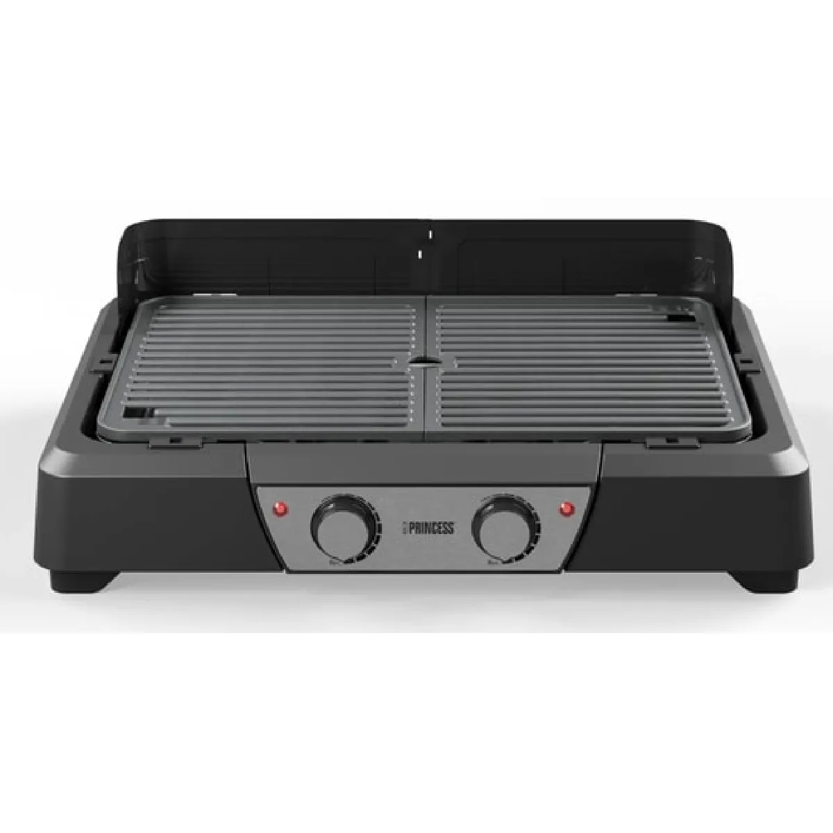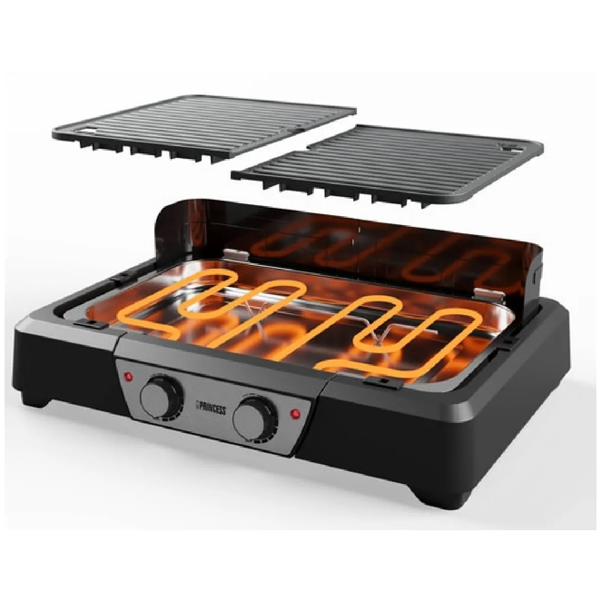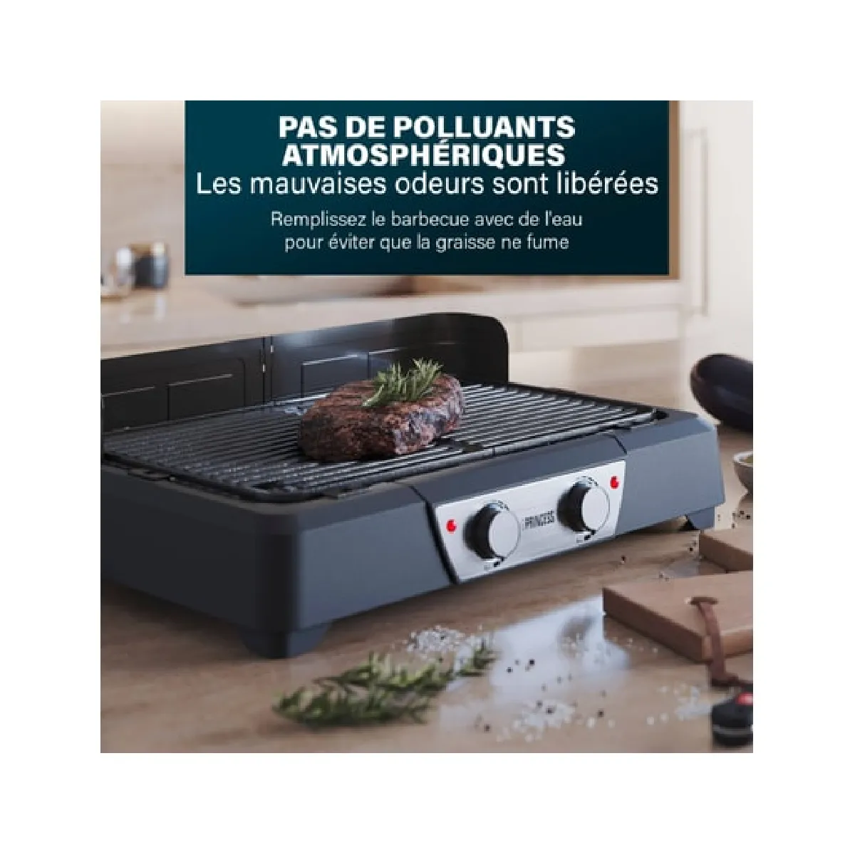 Barbecue de table électrique - 2 zones de chauffe 2000W - Plaque 43 x 27 cm - Pare-vent