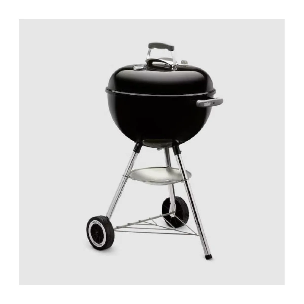 Barbecue a charbon de 47 cm de diametre avec cuve et couvercle en acier émaillé garantis 10 ans. Poignées en nylon renforcées a la fibre de verre. Thermometre intégré au couvercle pour le contrôle de la température pendant la cuisson. Clapet d'aération en aluminium. Grille de cuisson en acier chromé. Grille foyere en acier. Coupelle cendrier en aluminium.