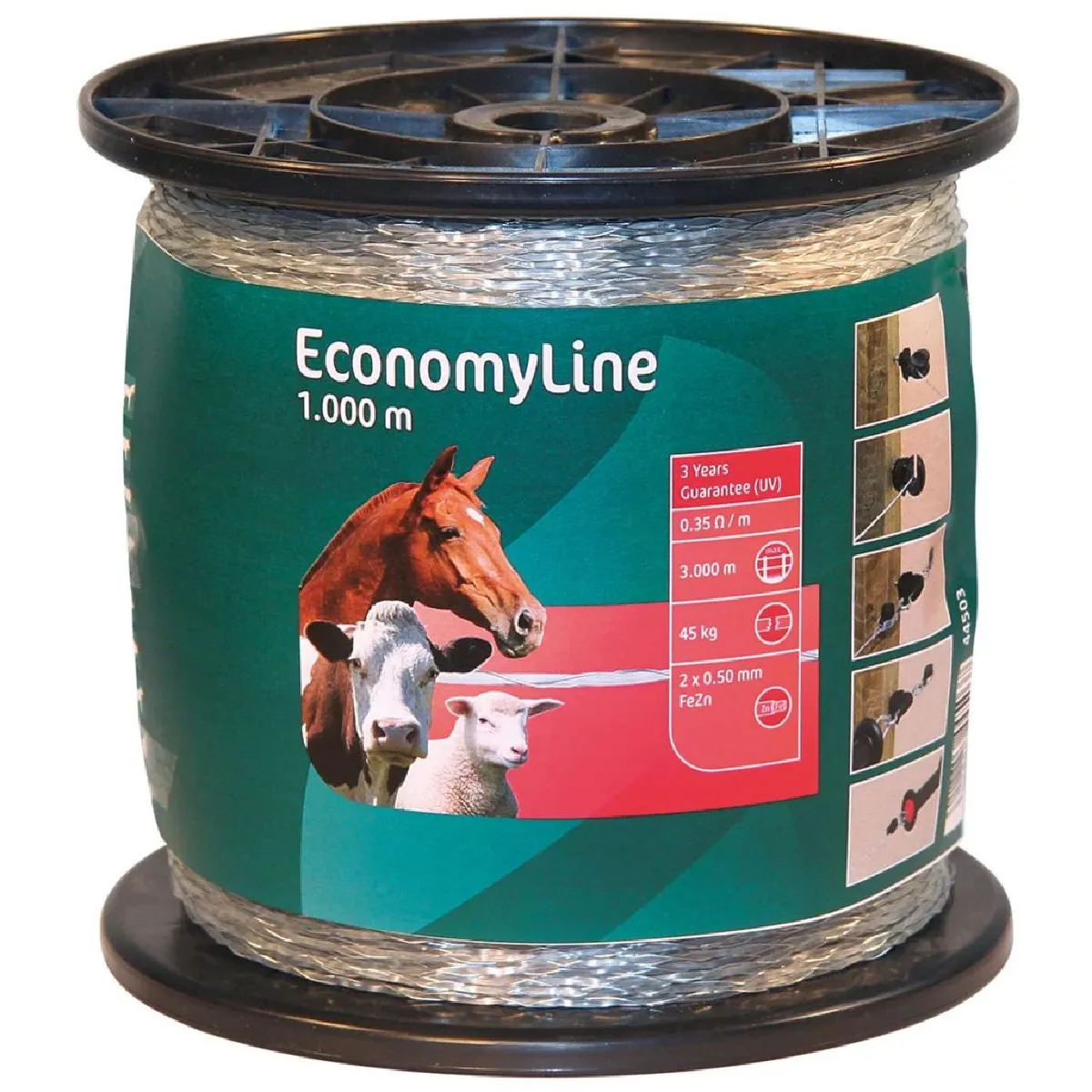 Le fil mono de clôture EconomyLine de la marque Kerbl est le choix idéal pour garder vos animaux dans ou hors d'une certaine zone. Le fil mono EconomyLine est fait de 2 fils en acier galvanisé enroulés autour d'un noyau de nylon, ce qui le rend très fiable et durable. C'est un fil à haute conductivité doté de bonnes qualités de rembobinage, le rendant idéal pour une clôture temporaire ou pour un pâturage en rotation. brbrulliCouleur : Transparent/liliMatériau : Plastique et métal/liliLongueur : 1 000 m/liliRésistance à la rupture : 45 kg/liliRésistance : 0,35 ohms/liliExcellente conductivité /liliConducteurs en acier inoxydable éprouvés/liliContrôle facilement le bétail/lili2 fils en acier galvanisé de 0,5 mm enroulés autour d'un noyau de nylon de 1,4 mm/liliFil d'acier : FeZn (0,5 mm en diamètre) /liliAvec 2 conducteurs/liliLongueur de clôture maximale recommandée : 3 000 m/liliEAN : 4018653445037/liliSKU : 415561/liliMarque : Kerbl/li/ulNous livrons dans toute la France métropolitaine (hors Corse).