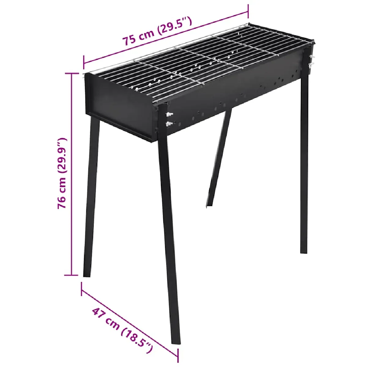 Support barbecue charbon - Acier robuste - Grille 75x28 cm - Facile à déplacer