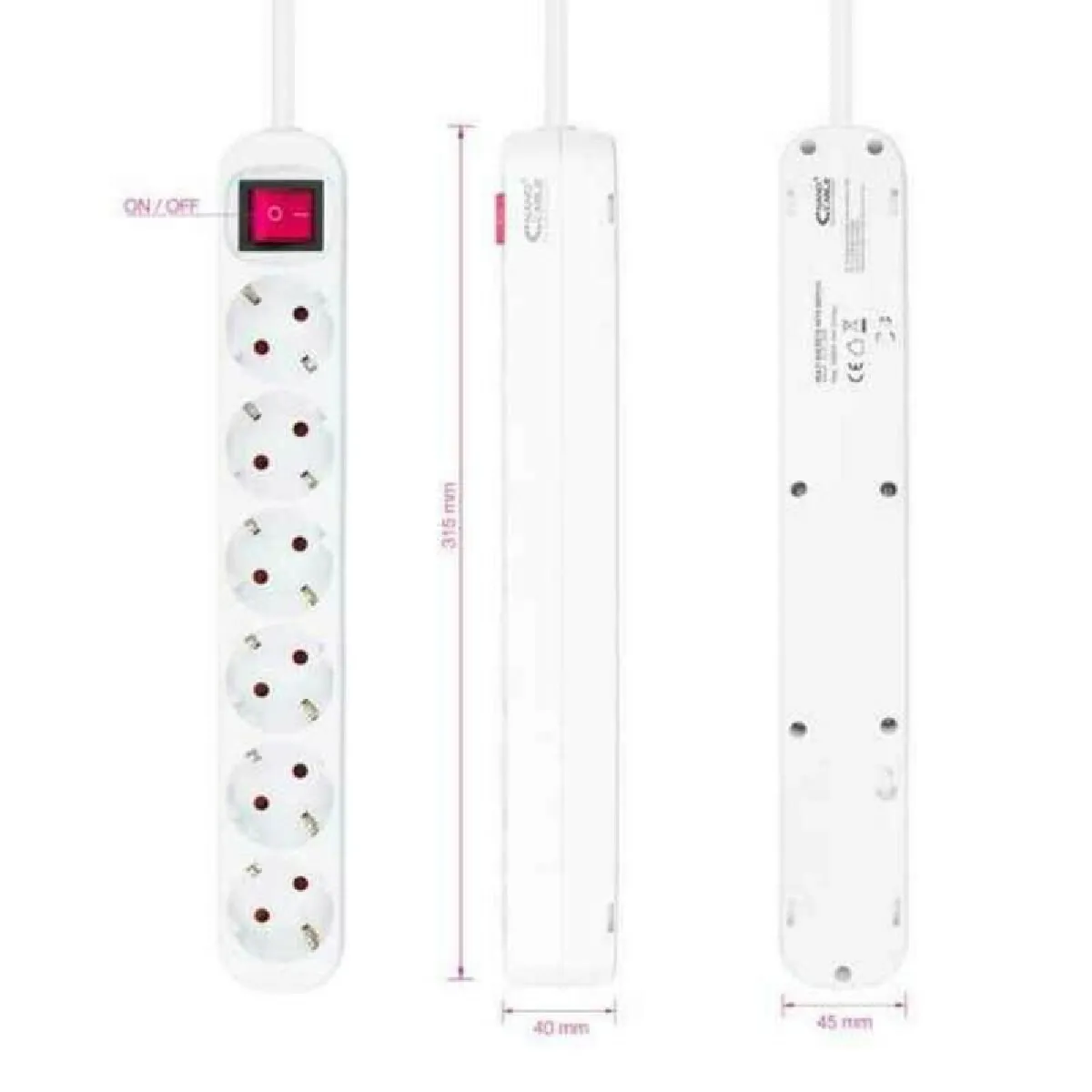 - 6 prises Type F avec interrupteur marche/arrêt pour une mise hors tension groupée