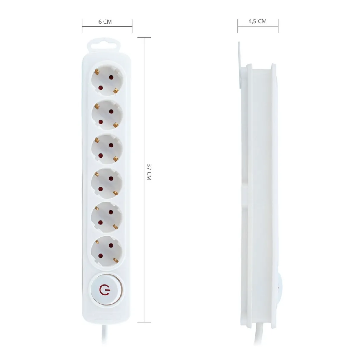 Bloc multiprise 6 prises avec interrupteur - 16 A - 250 V - Câble 1,3 m - Couleur blanche