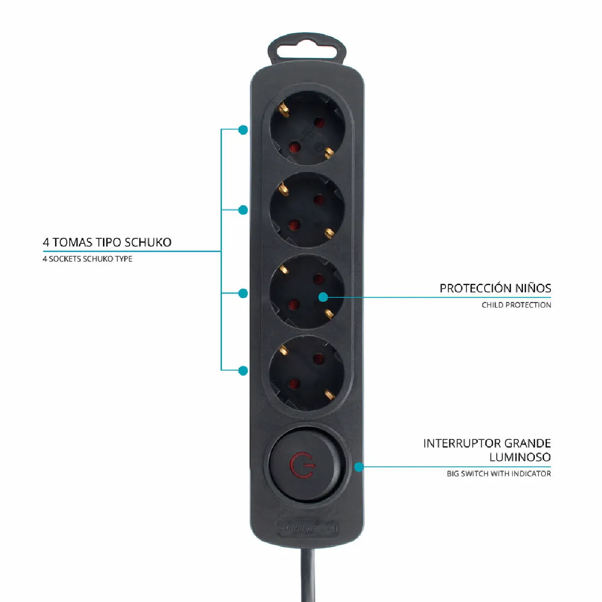 - 4 prises Schuko pour connecter plusieurs appareils en même temps