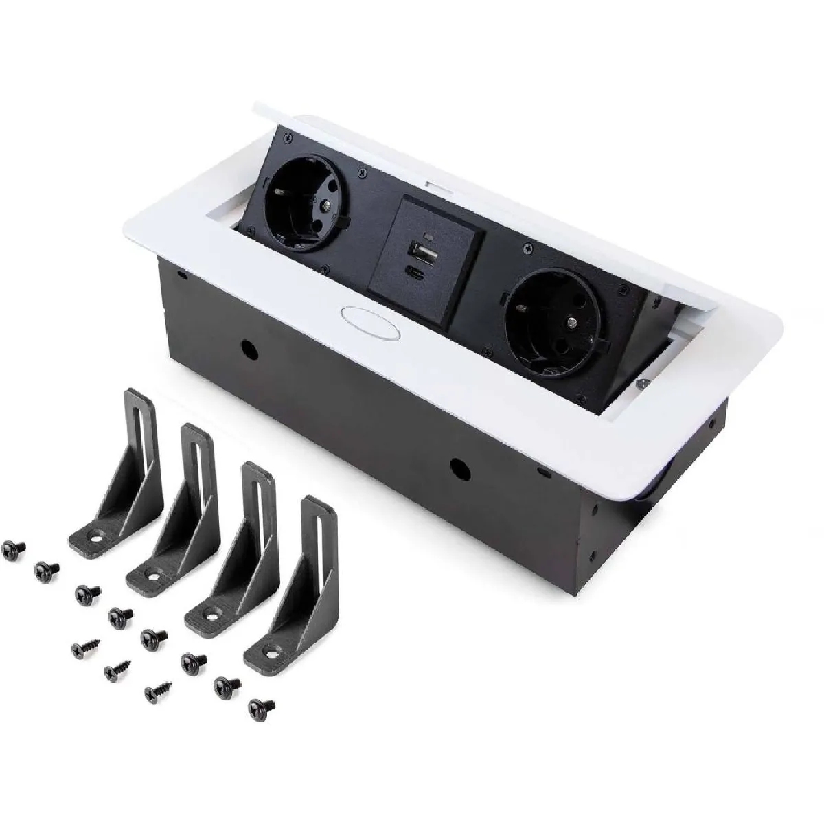 Multiconnecteur encastrable de bureau - 2 prises 13 A - USB-A et USB-C - couvercle à ouverture automatique - indicateur LED - câble 1,5 m - 230 V - 3000 W