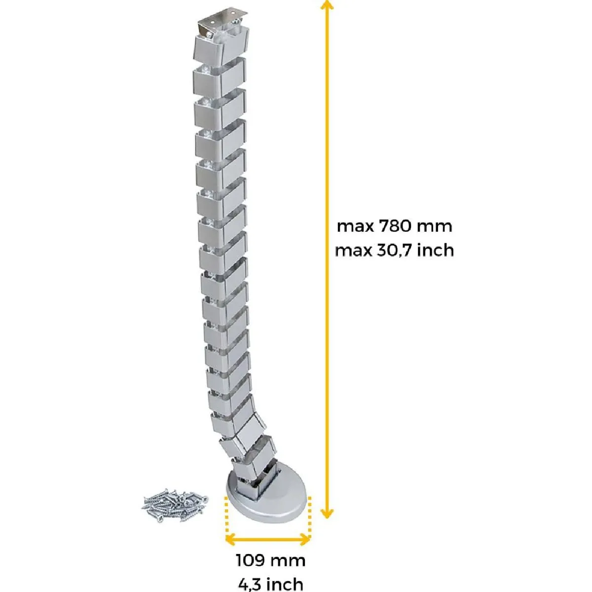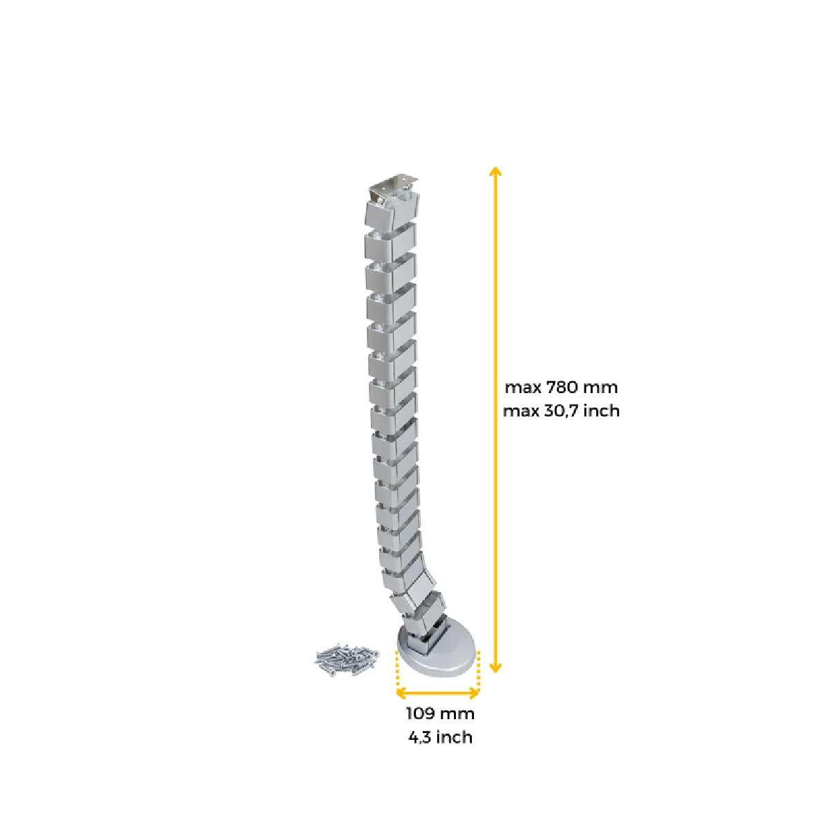 Gaine passe-câbles articulée pour bureau - 18 segments - fixation sous plateau - réglable en hauteur - vis incluses