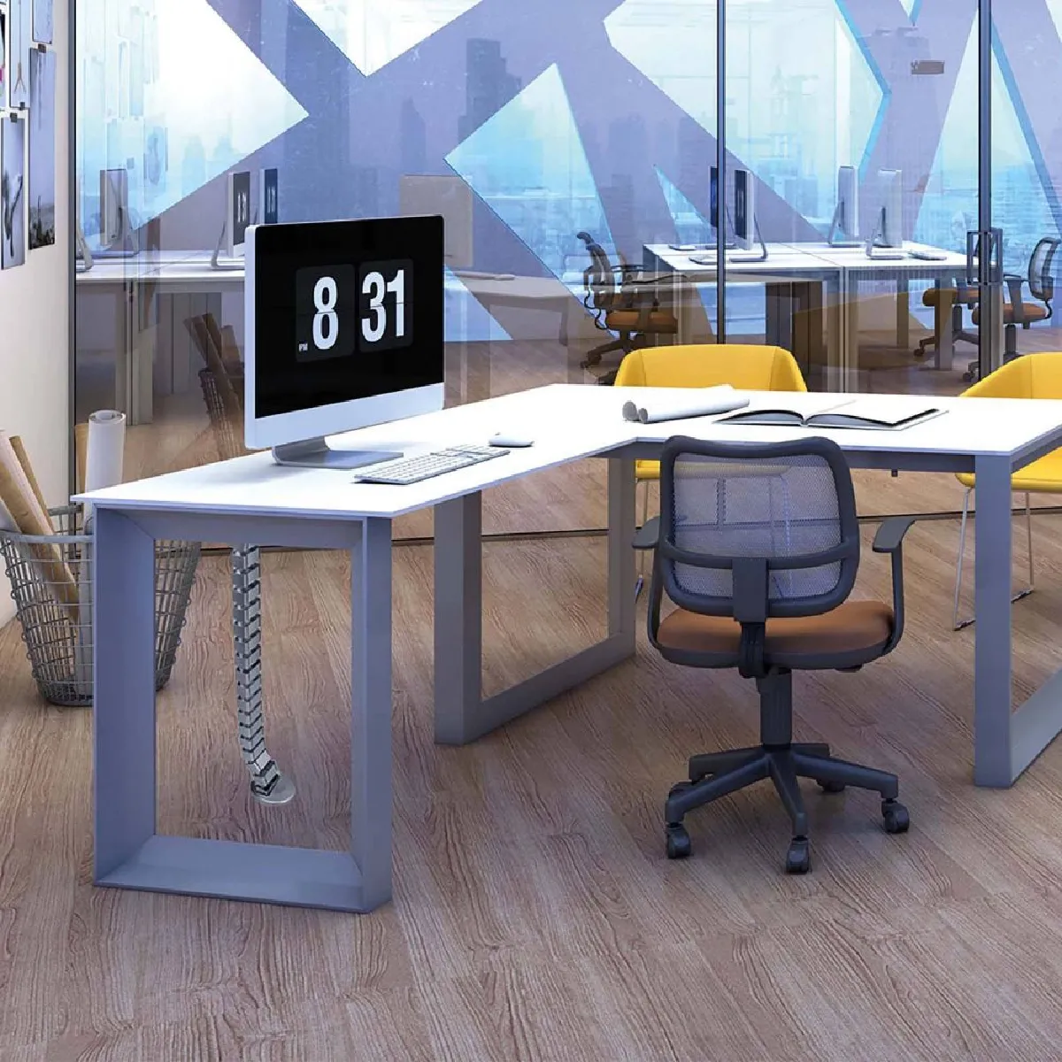 La gaine passe-câbles organise et protège les liaisons électriques sous le plateau pour un espace de travail net et sécurisé. Composée de 18 segments articulés, elle s'adapte au trajet des câbles tout en limitant les torsions. Son installation s'effectue dans la partie inférieure du plateau à l'aide des vis fournies, assurant une fixation stable sans intervention complexe. Avec une hauteur réglable jusqu'à 78 cm, elle accompagne les postes assis-debout et différents formats de bureaux. La finition coloris aluminium s'intègre facilement à des environnements professionnels sobres.