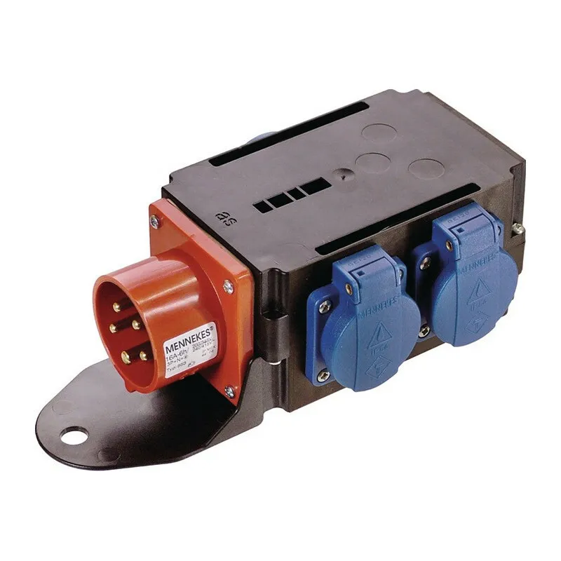 Adaptateur CEE multiprise - 400 V 16 A 5 pôles IP44 - 3 prises 230 V - Boîtier robuste - Fusible intégré - Usage mobile