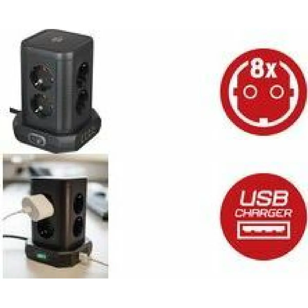 Tour multiprise avec USB - 8 prises et 4 ports USB - interrupteur - câble 2 m - 3680 W - 16 A - 230 V