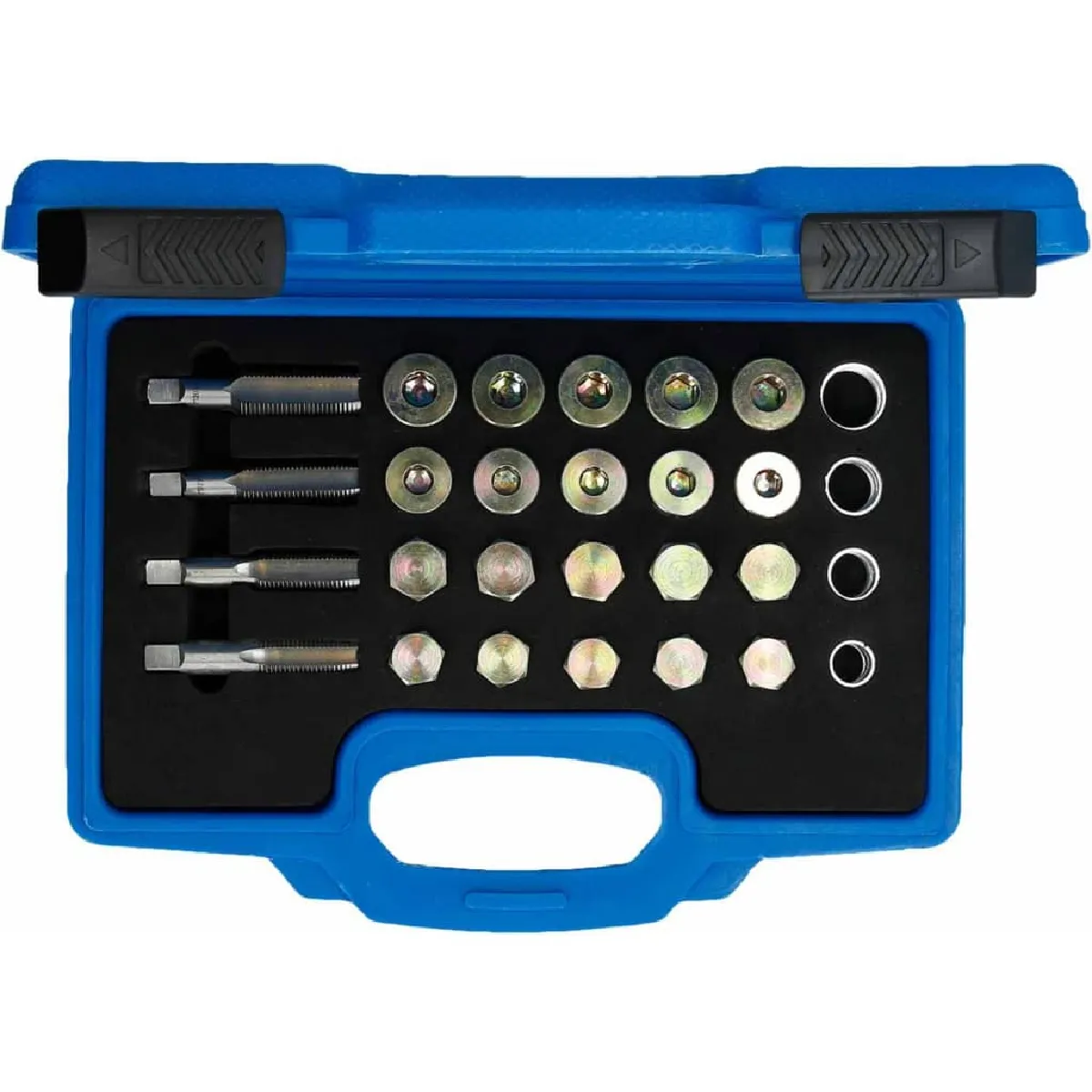 Kit de réparation filetage pour bac à huile - Inclus tarauds, vis et bagues d'étanchéité - Mallette de rangement